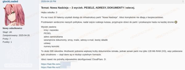 Podsyłacie nam informacje o tym, że na jednym z cyberprzestępczych kanałów na Telegramie pojawiło się ogłoszenie sprzedaży bazy danych OVH, która miała zostać rzekomo wykradziona z “OVH parent’s account” (cokolwiek przez to rozumie autor). W pozyskanych danych ma rzekomo być: 1.6 milionów rekordów dotyczących „świeżych klientów” OVH 5.9 milionów informacji dot. hostowanych stron Zwracamy jednak uwagę, że Octave Klaba, właściciel OVH zdementował że podane przez sprzedawcę przykładowe dane należą […]